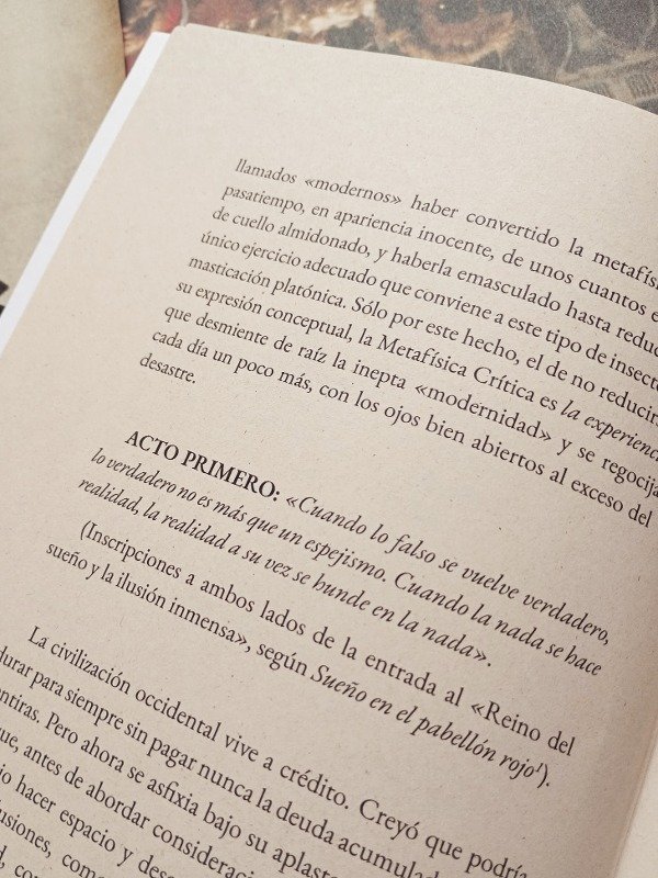 ❝La Metafísica Crítica no tiene por vocación proporcionar a los seres humanos una nueva y refinada especie de consuelo. Más bien, su consigna es: generalizar la inquietud. La Metafísica Crítica es ella misma esa inquietud que ya no puede concebirse como debilidad o vulnerabilidad, sino como aquello de donde emana toda fuerza. No está hecha para brindar seguridad a los débiles que necesitan apoyo, sino para conducirlos al combate. Es como un arma, de la que nadie puede decir a quién servirá más que quien la tome. En cada vida que se mantiene en tal contacto con el Ser hay una potencia de devastación cuya intensidad uno no puede medir. El proceso que tantos otros antes que nosotros emprendieron contra lo real está en vías de ser ganado, pero por el enemigo.❞