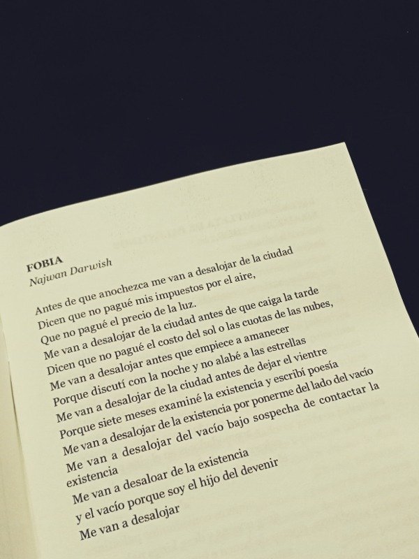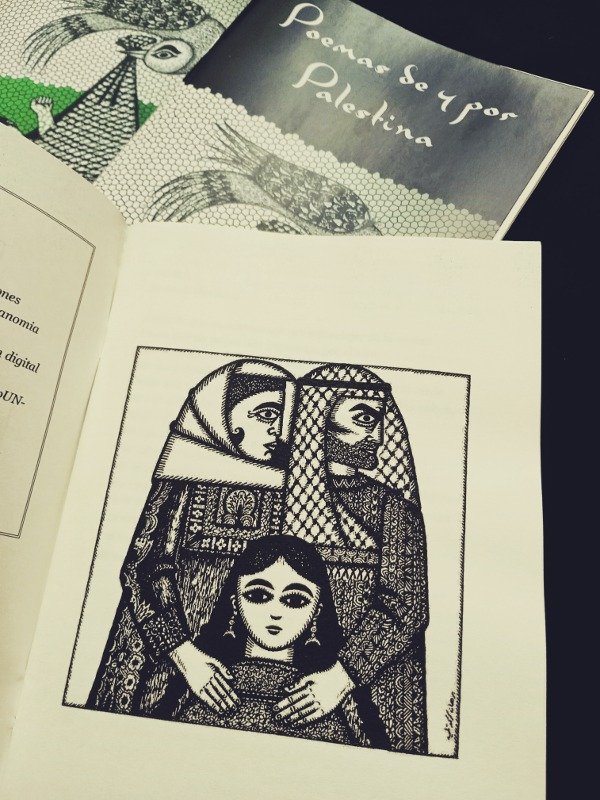 Es una compilación de poesía actual de autorxs palestinxs. Los dibujos que acompañan son de Burhan Kartutli.